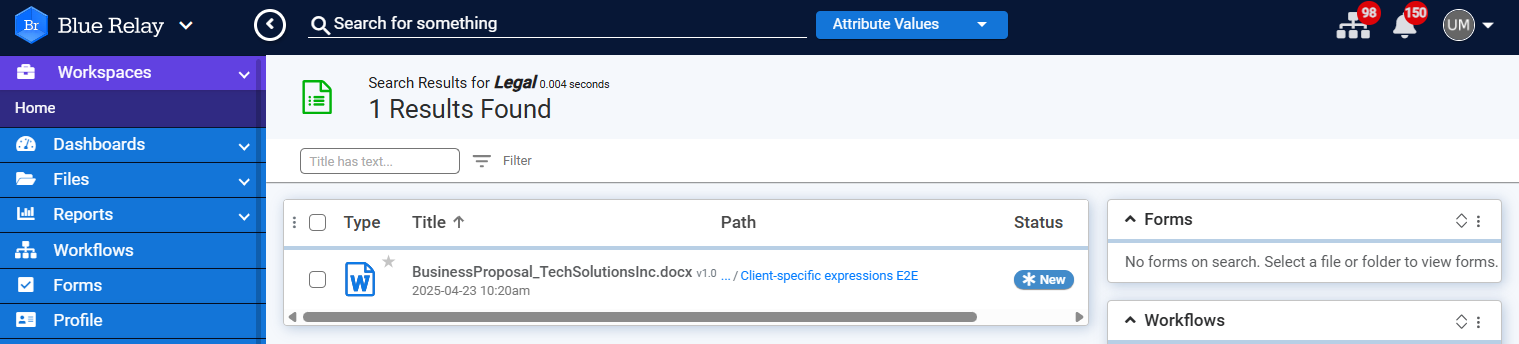 3. The search results appear. Files and folders with the attribute name or value are shown.