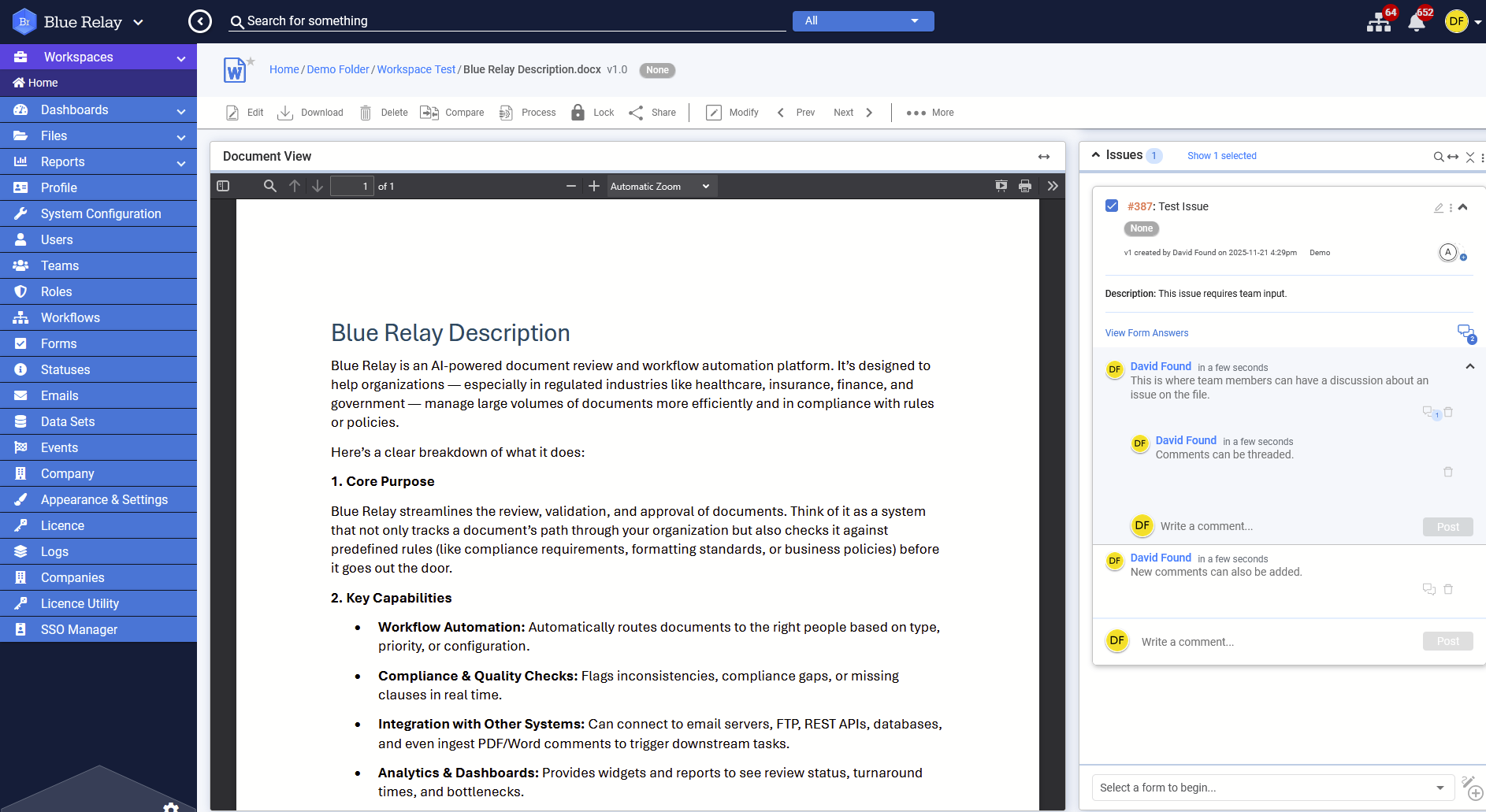You can add comments to an issue. You can also reply to comments from other Blue Relay users.